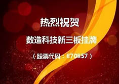 查看更多2017年1月23日,上海數(shù)造機(jī)電科技股份有限公司在全國中小企業(yè)股轉(zhuǎn)系統(tǒng)(新三板)獲準(zhǔn)掛牌,證券簡稱:數(shù)造科技,證券代碼:870857。