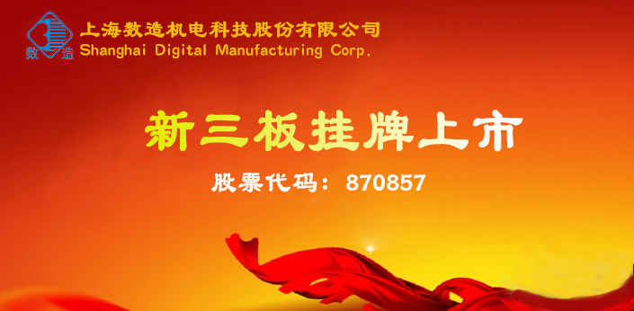 2017年1月23日,上海數造機電科技股份有限公司在全國中小企業股轉系統(新三板)獲準掛牌,證券簡稱:數造科技,證券代碼:870857。全國中小企業股份轉讓系統(新三板)是經國務院批準,依據證券法設立的全國性證券交易場所,是繼上海證券交易所、深圳證券交易所之后第三家全國性證券交易場所。